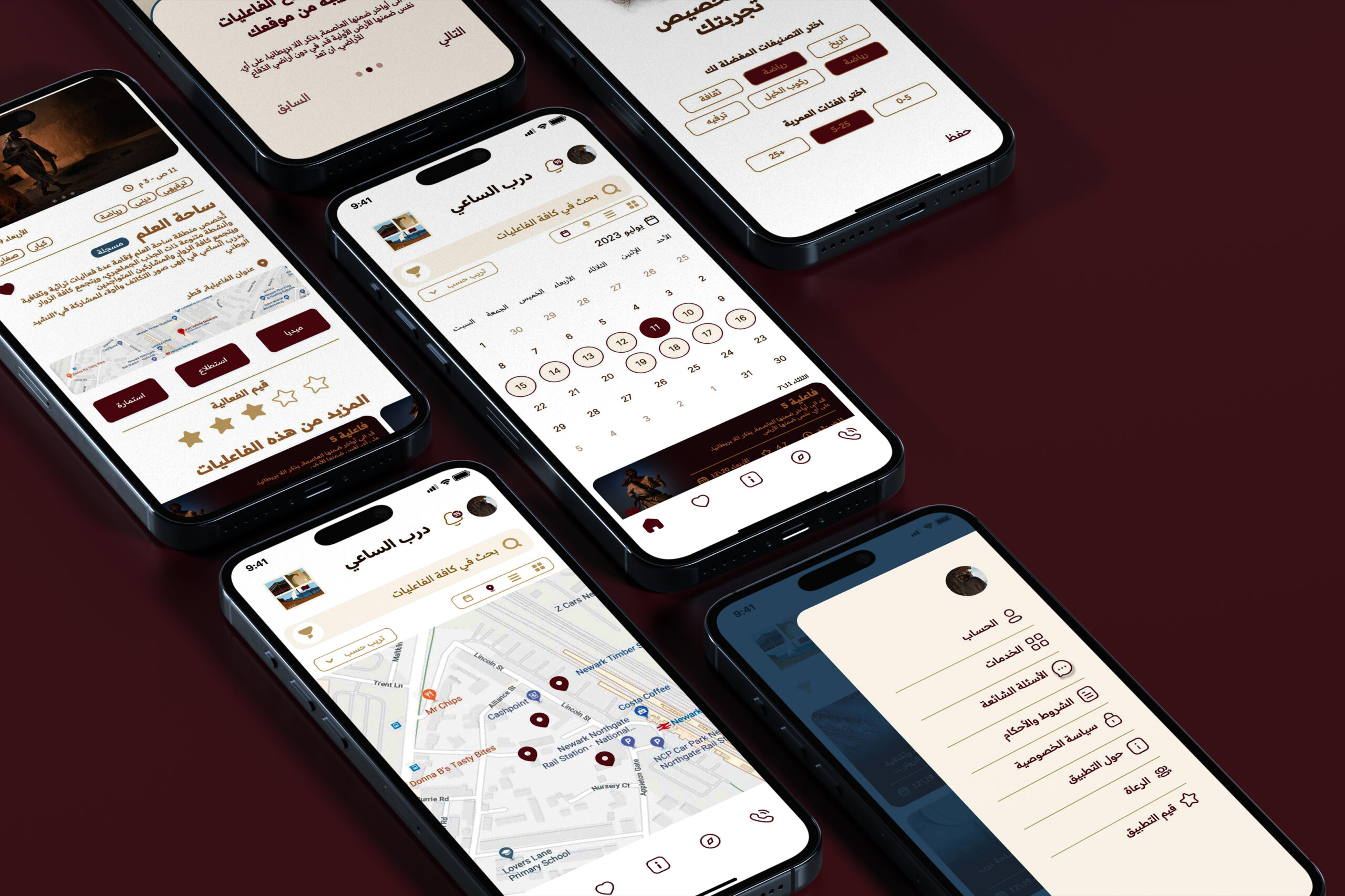 Our design blended the rich Qatari cultural aesthetic—deep maroon tones, elegant typography—with a sleek, modern interface. We designed the mobile app as the primary touchpoint, ensuring that the user journey—from event browsing to registration—was seamless. Alongside, we created a simple website, connected to the same event APIs, ensuring consistency across platforms.